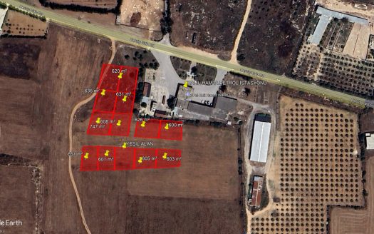 Parsellenmiş Arsalar 13 adet Arsadan oluşan Parselasyon Yol+Su+Elektrik mevcut 600 m² ve 747 m² arası büyüklükte
