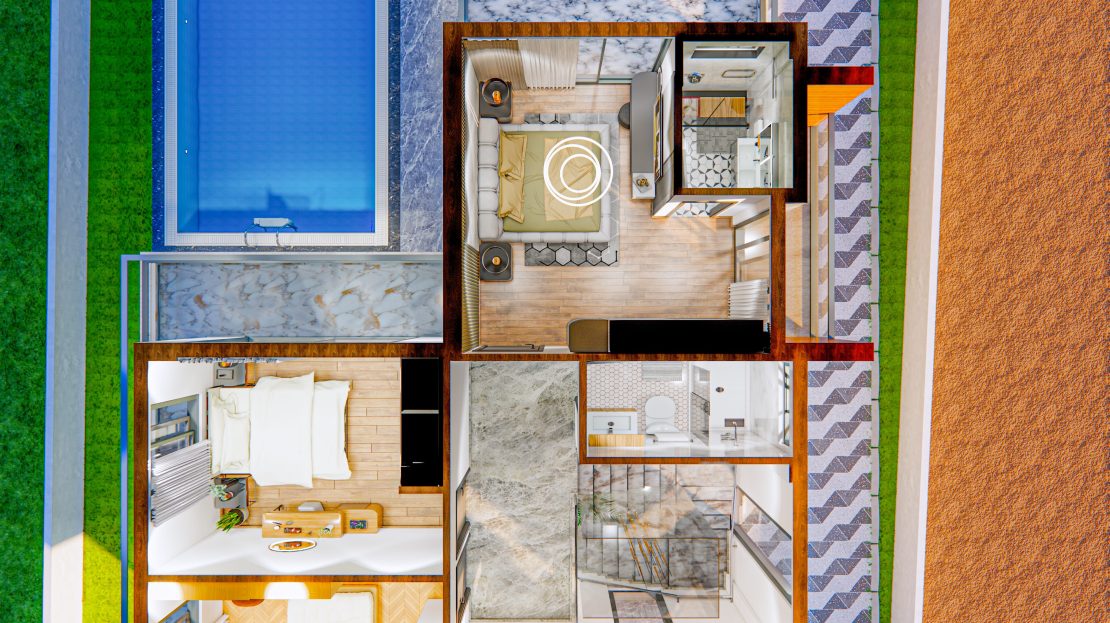 3+1 220 m² Özel Havuzlu Bahçeli Site içerisinde Deniz manzaralı 425,000 Stg – 475,000 Stg arasında fiyatlarla